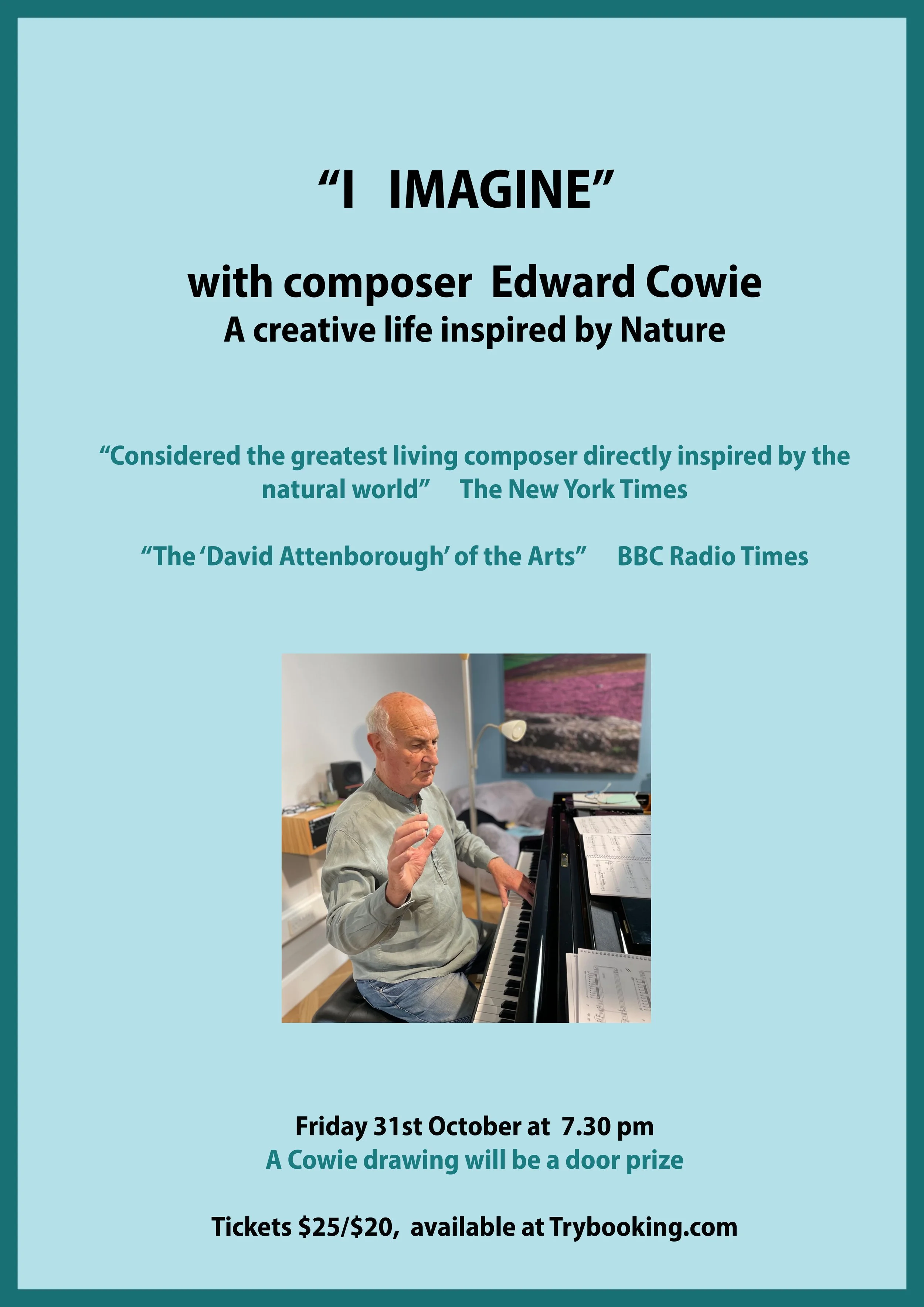 Edward Cowie, renowned composer and artist will not only share the intimate and often astounding passage of his life and imagination, but also a time journey of creation stretching back 2 billion years from the moment life on earth began to ‘sing’ and sound.